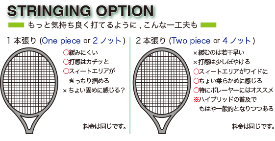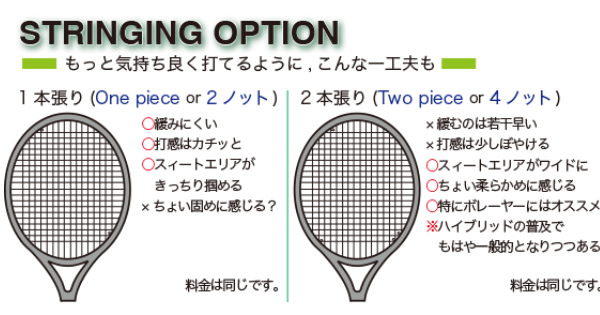 張り方は1本張り(Around The World)と2本張りを適宜、使い分けます。